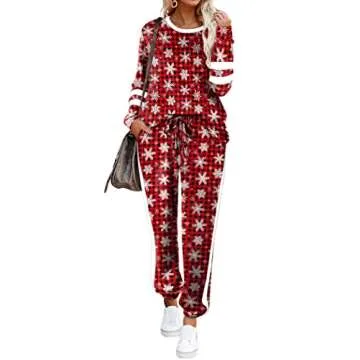 Aloodor Sweatsuits for Women Christmas Winter Outfits 2 Piece Pajamas Red Haig Snow S