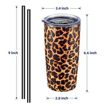 Show more Discover the perfect companion for your daily hydration needs with the ALOUFEA 20oz Stainless Steel Tumbler. Expertly designed to enhance your drinking experience, this tumbler incorporates a stunning leopard print, making it not only functional but also fashionable. Its double-wall vacuum insulation technology ensures that your beverages remain at the desired temperature, whether you’re enjoying a hot cup of coffee in the morning or a refreshing iced beverage on a sunny afternoon. With a generous 20oz capacity, this tumbler holds just the right amount to keep you hydrated throughout your day.