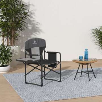 Show moreIntroducing the ALPHA CAMP Heavy Duty Folding Chair – your ultimate companion for relaxation and comfort! Whether you are camping under the stars, hosting a backyard barbeque, or enjoying a beach day, this oversized director's chair is built to support you every step of the way. Designed with precision and attention to detail, this chair boasts a breathable mesh back that enhances airflow and comfort. Its heavy-duty steel frame ensures durability and stability, supporting up to an impressive 300 lbs. Plus, with its innovative foldable design, setting it up is a breeze, taking mere seconds without the hassle of installation. Experience leisure like never before with the ALPHA CAMP chair, the perfect blend of practicality and style.