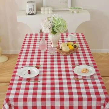 Designed for versatile occasions, the stylish red and white tablecloth can effortlessly elevate any event. Whether it's used indoors as a dining table cover for the kitchen or living room, or outdoors at weddings, birthday parties, and picnics, this tablecloth proves itself adaptable and charming. It also serves as an ideal choice for buffets, camping, and barbecues, making it a must-have for anyone keen on decorating their life with elegance.