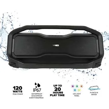 Show more Introducing the ultimate companion for music lovers and outdoor enthusiasts alike—the Altec Lansing wireless Bluetooth speaker! With its impressive IP67 Waterproof rating, this speaker is not only highly durable but also completely dust-tight and resistant to water immersion up to 1 meter for 30 minutes. Whether you’re lounging by the pool, hiking through the rain, or hosting an epic backyard barbecue, you can trust this speaker to deliver high-quality sound without any worries.