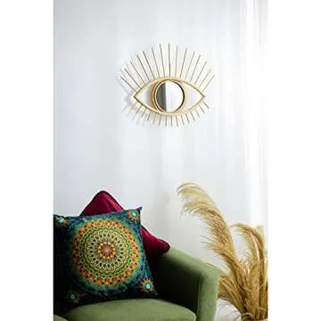 Show moreThe Altglas Eye Wall Decor Rattan Mirror embodies the perfect blend of style and functionality, crafted for those who cherish unique decor pieces. Handmade with precision, this boho style mirror features a stunning evil eye design complete with customizable eye lashes that allow you to express your creativity. Made from high-quality, natural rattan, this mirror not only serves as a functional piece for your space but also adds an organic touch that revitalizes both modern and vintage-inspired settings. Measuring the perfect size for any wall, it's ideal for bedrooms, living rooms, and more. The clean mirror surface enhances light and depth, making any room feel more spacious and inviting. This mirror is not just an accessory; it's a statement piece that transforms your decor with its captivating charm and individuality.