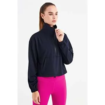 altiland Half Zip Pullover Cropped Jackets for Women Long Sleeve Workout Athletic Running Yoga Shirts (S, Black)
