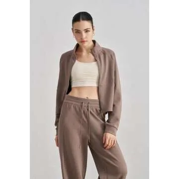 altiland Women's Full Zip Workout Running Yoga Scuba Jackets and Pants Set 2 Pieces Casual Outfit (Mocha Brown,S)
