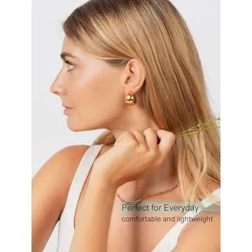Altitude Boutique 18kt Gold Chunky Bubble Hoop Earrings For Women | Gold Plated Hollow Earrings | Lightweight, Hypoallergenic Thick Hoops (18mm, Gold)