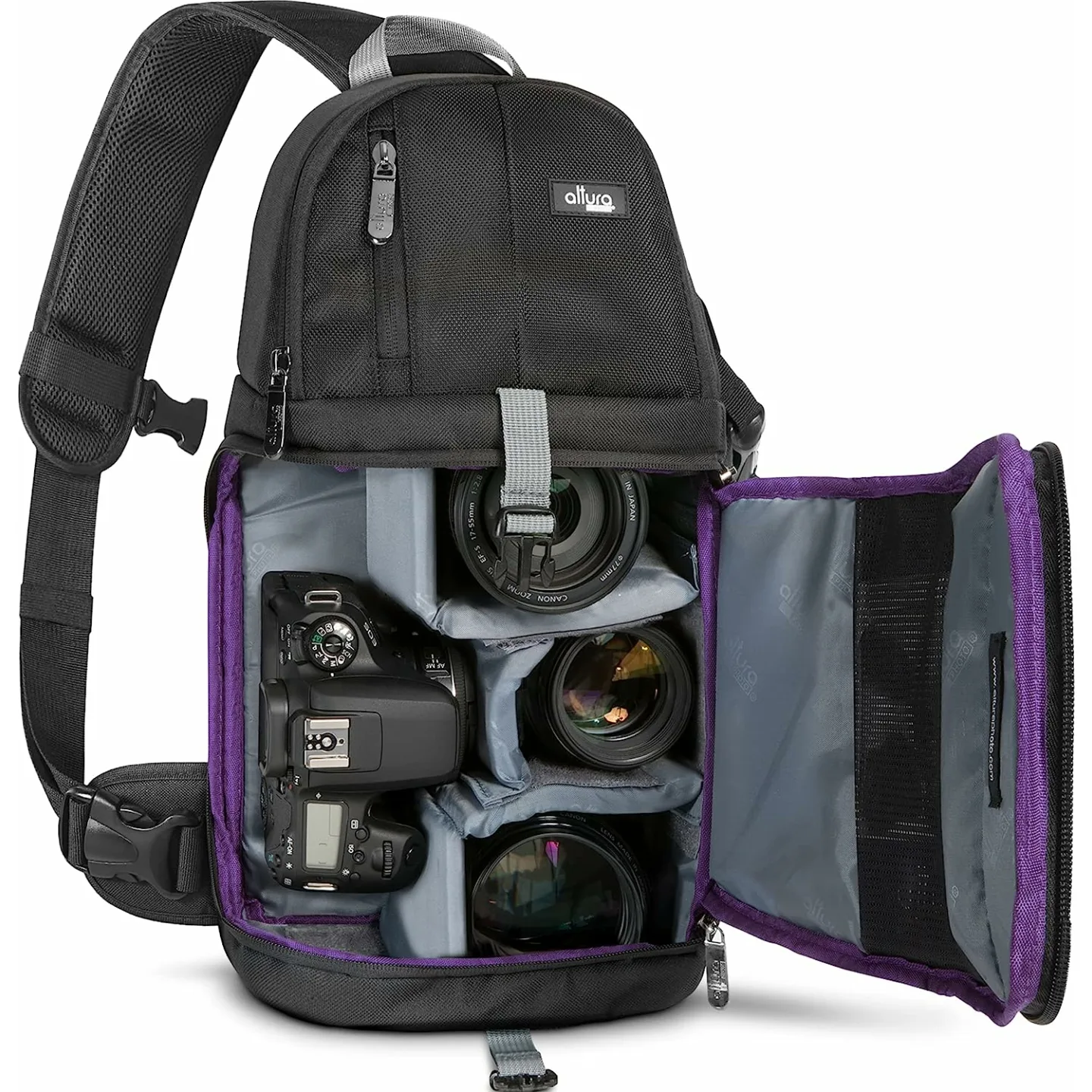 When compared to other camera bags on the market, the ALTURA PHOTO camera bag sling offers more convenience and flexibility. The quick rotation sling strap and side access zipper provide faster and easier access to your equipment. Additionally, the adjustable padded dividers and multiple compartments maximize storage space, offering better organization than standard camera bags.