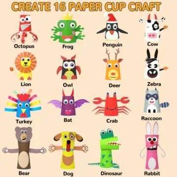 Show more Introducing the AluAbi Crafts for Kids Ages 4-8, a delightful 16-pack DIY animal paper cup craft kit that brings creativity to life! Featuring meticulously designed projects, this kit allows children to construct 16 different adorable animal characters including a rabbit, dinosaur, octopus, frog, and many more. Each kit contains high-quality materials and easy-to-follow instructions, ensuring a seamless crafting experience. Perfectly catering to young artists, this craft kit not only encourages imagination but also provides a wonderful opportunity for bonding moments between children and parents.