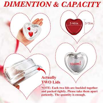 Show moreIntroducing our delightful Aluminum Foil Cake Pan Heart Shaped Cupcake Cup with Lids, a perfect combination of charm and functionality for all your baking desires! Ideal for any occasion, these mini cupcake cups are perfect for celebrating Valentine’s Day, Mother’s Day, Christmas, birthdays, and weddings. Each generous set includes 40 heart-shaped aluminum foil cake pans, each paired with a matching lid. Measuring at 3.46 x 3.15 x 1.18 inches, and with a cup capacity of 3.4 oz (100 ml), these cups are designed to not just please the eye but also accommodate your delicious treats with ease. Made from high-quality, durable aluminum foil, they promise to retain their vibrant red color while being slightly waterproof and oil-proof, ensuring your baked goods remain pristine and delightful!