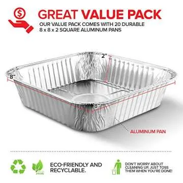 Aluminum Pans 8x8 Disposable Foil Pans (20 Pack) - 8 Inch Square Pans - Tin Foil Pans Great for Cooking, Heating, Storing, Prepping Food