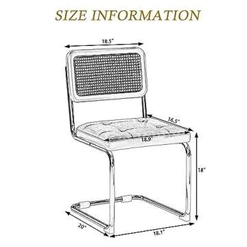 Alunaune Modern Mid Century Brown Dining Chairs Set of 2, Upholstered Natural Rattan Kitchen Chairs, Armless Accent Chair Side Chairs with Metal Chrome Legs for Bedroom Living Room-PU Seat