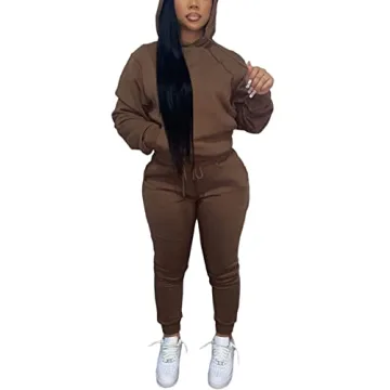 Alunzoem Jogger Set for Women Two Piece Long Sleeve Hoodies Pullover Top and Skinny Pants Sweatsuit Coffee L