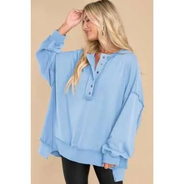Show moreIntroducing the ultimate blend of comfort and style: the AlvaQ Oversized Sweatshirt, specially designed for women who want to stay cozy without sacrificing fashion. This sweatshirt is crafted from ultra-soft and breathable fabric, ensuring a smooth touch against the skin while keeping you warm during chilly fall and winter days. The eye-catching button-down V neck adds a touch of sophistication to your casual look, making it a versatile addition to your wardrobe. With its oversized silhouette, it's perfect for layering over leggings or jeans, allowing you to flaunt your chic style effortlessly.