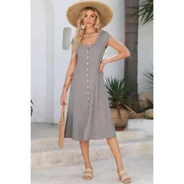 This dress is designed with thoughtful features that enhance its appeal. The buttons down the front offer a stylish touch, while some decorative buttons add an element of unique design. For added functionality, the two buttons at the waist are adjustable, allowing you to customize your neckline to your liking. The loose and relaxed fit of the skirt provides all-day comfort, letting you enjoy each moment without feeling restricted. Its solid color brings a hint of understated elegance that transitions seamlessly from day to night.