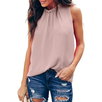 AlvaQ Summer Casual Chiffon Blouses for Women Juniors Sleeveless Flowy Tank Tops Shirts Tunics Pink Medium