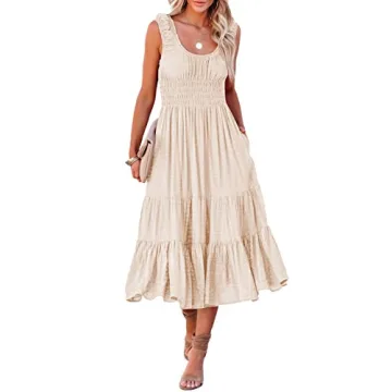 This flowing sundress is versatile enough to be a wedding guest midi dress, perfect for casual outings or special events like birthdays, parties, and dinners. With its easygoing style, just pair it with flat sandals, a sun hat, or oversized sunglasses for an effortless yet fashionable look.