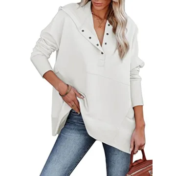 Show more Introducing the AlvaQ Womens Long Sleeve Oversize Button Down Sweatshirt, the ultimate essential for anyone seeking unmatched comfort without sacrificing style. Made from a super soft and skin-friendly fabric, this hoodie is designed to be breathable, preventing you from feeling stifled as you enjoy its warmth. Its perfectly oversized fit provides ample space, ensuring that you can wear it casually or elevate your look for a night out. You won’t just be comfortable; you'll also be on-trend and fashionable every time you put it on.