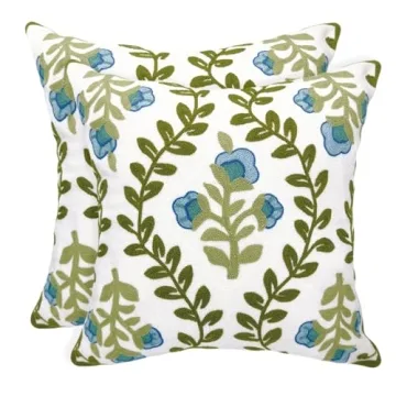 Elevate your home decor with the magnificent Alysheer Floral Embroidered Summer Decorative Throw Pillow Covers. Crafted meticulously from 100% high-quality cotton canvas, these pillow covers are not just another home accessory—they are a statement piece for any room. Each cover features a breathtaking floral embroidered pattern that showcases vibrant blue flowers gracefully intertwined with lush green leaves, stitched with precision to ensure durability without sacrificing elegance. Measuring...