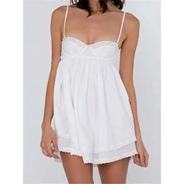 Alyweatry Women Chic Vintage Lace Cute Fairy Dress Sleeveless Spaghetti Strap Grunge 90S Aesthetic E-Girl Mini Dress Streetwear (S, 27-White)