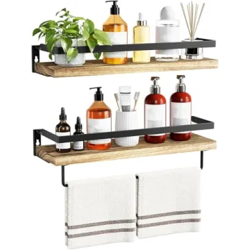 AMADA HOMEFURNISHING Bathroom Shelves with Towel Bar, Floating Shelves for Home Decor, Light Brown Set of 2 - AMFS01