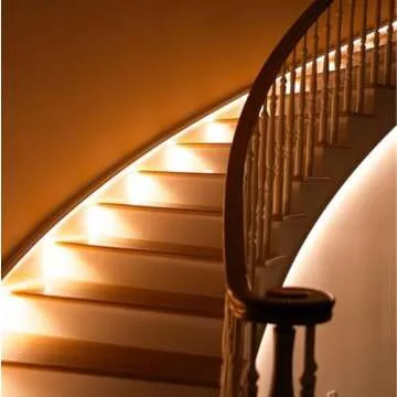 Measuring a generous 9.8 feet, this LED strip light comes with 3M adhesive backing, ensuring easy and flexible installation in a variety of locations. You can easily trim the strip to your desired length, making it perfect for closets, cabinets, stairways, and more. It's an ideal solution for those hard-to-reach areas that require an extra touch of illumination.