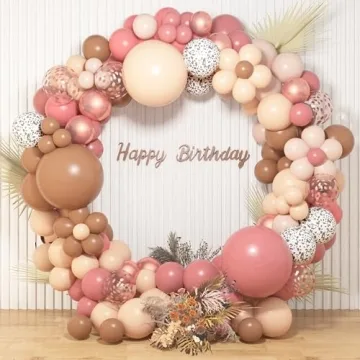 Show more Unveil the magic of celebration with the Amandir 162Pcs Boho Balloon Garland Arch Kit. This enchanting balloon set is meticulously curated to transform your events into stunning visual spectacles. Encompassing a vibrant palette of dusty pink, rose gold, brown, blush, and peach, each balloon is crafted from premium, environmentally friendly materials ensuring safety for every occasion. Whether it’s a baby shower, birthday party, or a chic bridal shower, this kit is designed to elevate your gathering with elegance and style.