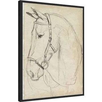 Amanti Art Framed Canvas Wall Art 30x23 Horse in Bridle Sketch II by Jennifer Paxton Parker, Framed Wall Art Canvas, Animals Artwork, Modern Decor, Large Poster Painting for Living Room, Bedroom,