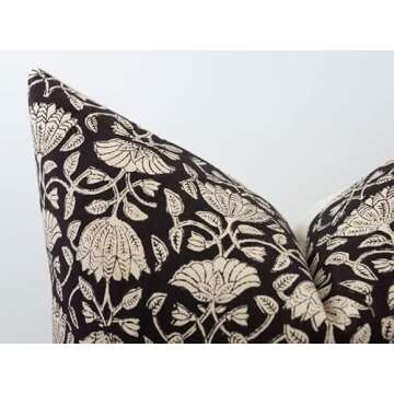 AMARI || Floral Block Print Pillow Cover Black and Tan Floral Fall Pillow Modern Farmhouse Cottage Moody Floral Sofa Pillow Tan Floral, both side print, Custom Size