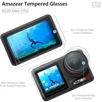 Show moreIntroducing the **AMAZEAR Lens Screen Protector**, meticulously engineered for the DJI Osmo Action 5 Pro camera, ensuring your device remains safe and pristine. This premium set includes **two sets of tempered glass protectors** specifically designed to fit your screens and lens perfectly, making it an essential addition to your Action 5 Pro accessories. Say goodbye to worries about scratches and damage; with these protectors, your adventures can be captured without compromising your equipment's integrity.