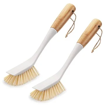 Amazer 2-Pack Dish Brush, Scrub Brush Cleaner with Bamboo Long Handle, Cleaning Kitchen Brushes for Dishes, Good Grip Kitchen Dish Washing Brushes for Pot Pan Plate Cleaning
