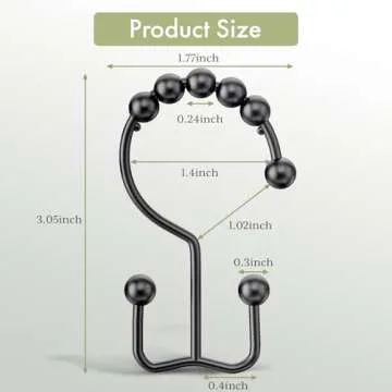 Amazer Black Shower Curtain Hooks, Shower Curtain Hooks Rust Proof 12 Pcs Stainless Steel Shower Hooks for Shower Curtain, Double Shower Curtain Hooks for Bathroom Shower Rods Curtain