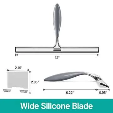 Show more The AmazerBath Multi-Purpose Shower Squeegee is the ultimate cleaning companion for every household. This elegant yet practical tool is designed to tackle a variety of cleaning tasks, making it perfect not only for the shower but for mirrors, windows, and even car glasses. Crafted to remove water spots, soap scum, and dirt effortlessly, this squeegee will transform the way you approach cleaning. With a smooth, streak-free finish, the innovative silicone blade ensures that surfaces remain pristine, unlike traditional squeegees that often leave behind unsightly streaks and water spots.
