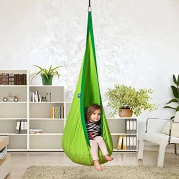 AMAZEYOU Kids Swing Hammock Pod Chair - Child's Rope Hanging Sensory Seat Nest Indoor Outdoor Use Inflatable Pillow - Great Children, All Accessories Included (Green)