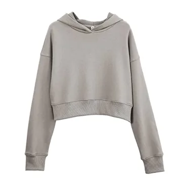 Stylish Amazhiyu Women's Cotton French Terry Cropped Hoodie - Gray, Medium