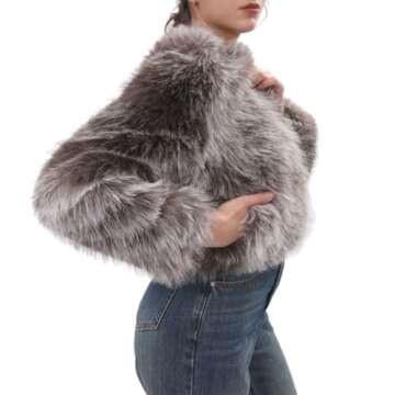 Why You will Love This Product? With the Amazhiyu Women's Faux Fur Cropped Coat, experience the joy of looking fabulous without compromising on comfort. This coat enhances your outfits for any occasion, exuding warmth and style that makes it a beloved piece in your wardrobe. Imagine stepping out into the chilly air confidently dressed in a coat that feels as good as it looks—this is a perfect blend of functionality and fashion that you'll cherish every winter!