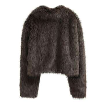 Amazhiyu Womens Faux Fur Zip-Up Cropped Jacket Long Sleeve Warm Winter Coat Coffee, Medium