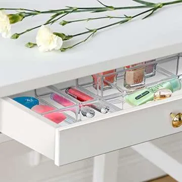 Show more Amazing Abby - QuickSort Duo is the ultimate storage solution designed to elevate your organization game! This 8-pack collection of modular and stackable plastic organizers is perfect for keeping your beauty products, office supplies, and decorative items in pristine condition. Say goodbye to clutter and hello to a neat and tidy space with a touch of modern elegance! Each piece is crafted from premium quality acrylic plastic, ensuring durability and style in every corner of your home.