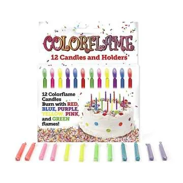 Amazing Colorflame Multicolor Happy Birthday Candles and Holders (12 Count),Unscented