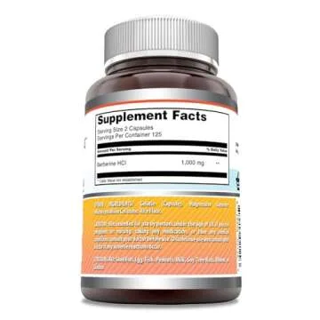 Show more Discover the health benefits of Amazing Formulas Berberine, a premium supplement designed to support your wellness journey effectively. Each serving boasts a potent 1000mg of pure berberine, acclaimed for its ability to maintain healthy blood sugar levels and improve overall vitality. With a generous supply of 250 capsules in each bottle, you’ll enjoy lasting support for your health and well-being. This supplement is not just high in potency; it’s also created following stringent GMP standards, ensuring that you receive a product that’s both safe and effective. Proudly made in the USA, it embodies quality you can trust.