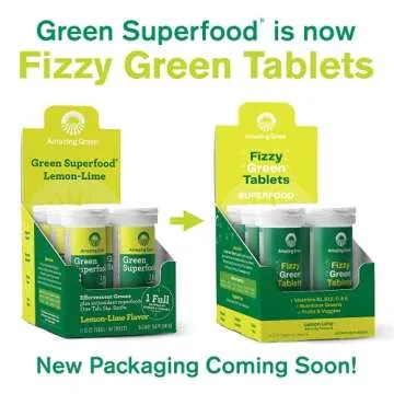Show more Introducing the Amazing Grass Fizzy Green Tablets Superfood Lemon Lime, a delightful way to enhance your hydration with a flavorful twist! Each fizzing tablet is crafted from an organic blend of wheat grass, barley, and alfalfa, sourced directly from our family farm in Kansas. Packed with a powerful combination of over 30 antioxidant-rich superfoods, including spirulina and chlorella, these tablets deliver incredible health benefits while making your water refreshingly tasty. Just one tablet melts into your favorite beverage, infusing it with the nutrient equivalent of one full serving of greens and veggies!