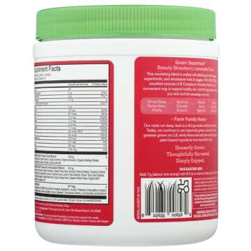 Show more Discover the transformative power of Amazing Grass Green Superfood Beauty, a meticulously crafted greens powder designed to elevate your health and enhance your natural radiance. Bursting with farm-fresh alkalizing greens, wholesome fruits, and nutrient-dense superfoods, this refreshing Strawberry Lemonade flavor is not just a drink; it’s a beauty elixir. Infused with 100% daily value of Biotin, it provides essential support for healthy hair, skin, and nails, ensuring you feel amazing every day. Plus, with its plant-based collagen alternative, this superfood blend helps stimulate collagen production to promote youthful vitality and a glowing complexion.