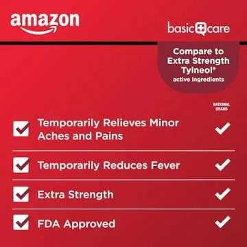 Amazon Basic Care Extra Strength Pain Relief, Acetaminophen Caplets, 500 mg, Pain Reliever/Fever Reducer, 100 Count (Packaging may vary)