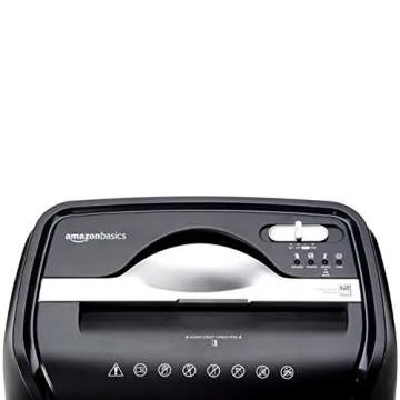 Show more Introducing the Amazon Basics 12 Sheet Cross Cut Paper and Credit Card Home Office Shredder, your ideal partner for keeping your personal and sensitive information secure. This compact yet powerful machine turns confidential documents into tiny, confetti-like pieces measuring just 3/16 by 1-9/16 inches, meeting the stringent security requirements of P-3 standards. It works effortlessly, shredding up to 12 sheets of 20-pound bond paper at once, and also includes a dedicated slot for shredding credit cards, staples, and small paper clips. This versatility makes it not just a paper shredder, but a multi-functional tool perfect for any home or office setup.
