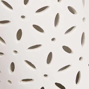 Ultrasonic electronic aromatherapy diffuser with 120ml water capacity; ceramic body with hollow flower pattern design detailing
