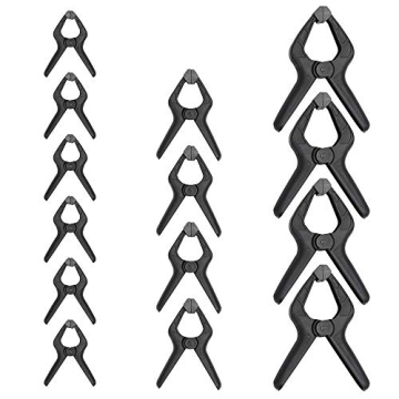 Show moreIntroducing the ultimate companion for all your DIY projects and creative endeavors: the 14-piece nylon spring clamp set from Amazon Basics. This versatile set is designed for maximum grip and durability, consisting of various sized clamps that include six 3-3/8-inch clamps, four 4-1/2-inch clamps, and four 6-1/2-inch clamps. Tailored perfectly for photographers, craftsmen, and home improvement enthusiasts, this clamp set ensures a secure hold to make your work easier than ever.