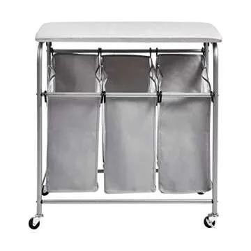 Amazon Basics 3-Bag Rectangular Laundry Sorter with Ironing Board Top, 31.5"L x 16.14"W x 33.07"H, Grey