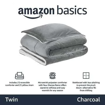Show more Transform your sleep experience with our ultra-soft micromink bedding comforter set, designed to envelop you in unparalleled warmth and comfort. This bedding set not only features a stunning reversible design—with a sophisticated charcoal print on one side and a luxurious plush white faux Sherpa fleece on the reverse—but it also adds a touch of elegance to any bedroom décor. Crafted for the modern home, our bedding ensures you stay cozy during those chilly winter nights while remaining breathable during warmer seasons. You'll fall in love with its medium weight, perfect for all-year comfort, making this an essential addition to your home.