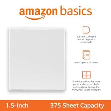 Amazon Basics 3 Ring Binders, 1.5 Inch, 4 Pack, D-Ring Organizer for School, Home Office, White