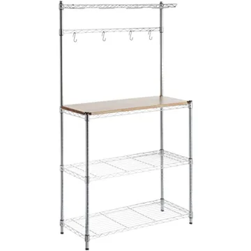 Show moreIntroducing the ultimate solution for all your kitchen storage needs: a heavy-duty kitchen baker’s rack that seamlessly combines functionality with style. This versatile rack is designed to accommodate various kitchen equipment, cookware, and pantry goods, making it perfect for anyone who loves to cook or entertain. Built by a trusted brand, this rack features multiple wire shelves, a sturdy wood countertop, and a removable half shelf, ensuring you have ample space for all your culinary essentials.