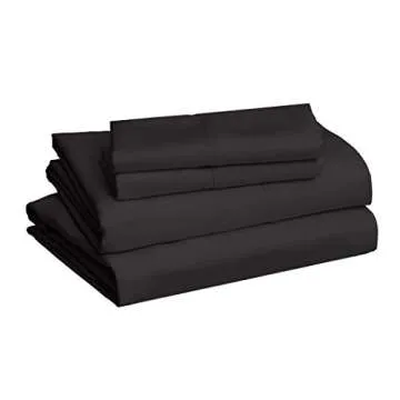Amazon Basics 4 Piece Deluxe Microfiber Bed Sheets, Full Size, Black, Solid