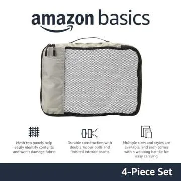 Amazon Basics 4 Piece Packing Cubes for Travel, Travel Organizer Zipper Cubes Set, Medium, Gray
